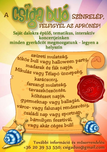 Óvodások, kisiskolások szórakoztatása bárhol az országban? Csiga Duó!